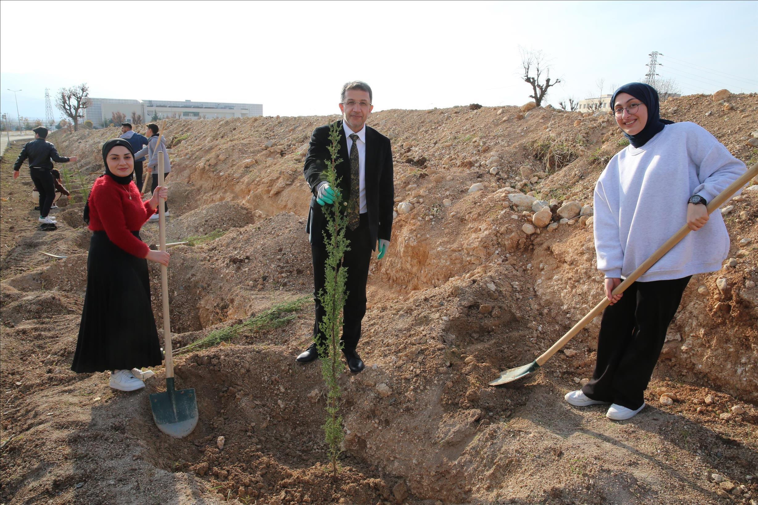 adım, gelecek için bir nefes!” sloganıyla kampüs alanında fidan dikim etkinliği